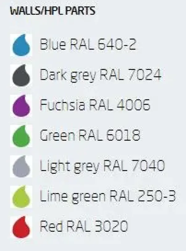 Materiale: PEFC sertifisert furu, HPL, pulverlakkert stål