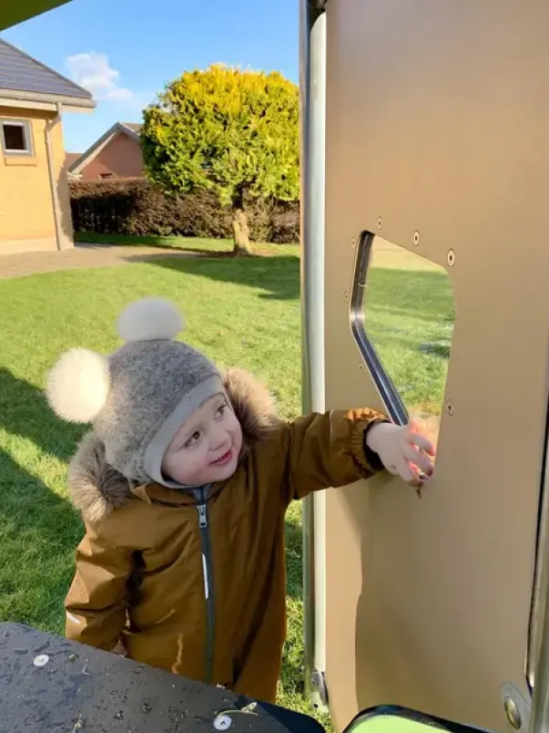 Beca lekehus med vindu og lekepanel