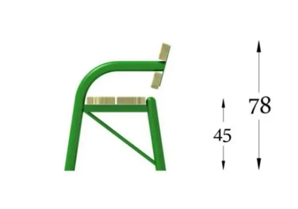 Impregnert tre, med galvaniserte og pulverlakkerte stålben.