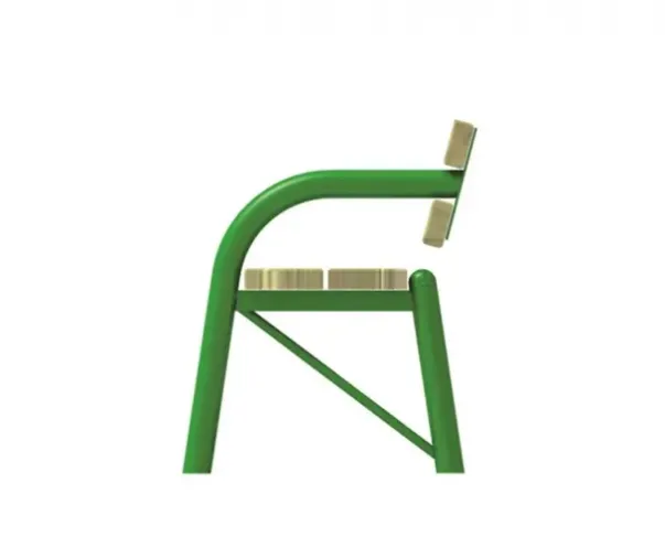 Impregnert tre, med galvaniserte og pulverlakkerte stålben.