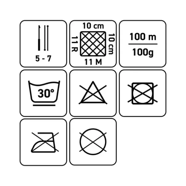 Strikkefasthet: 11 m x 11p = 10 x 10 cm