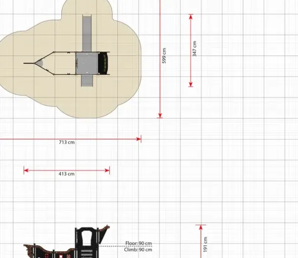 Sikkerhetsareal: L713 x B599 cm, 43 m²