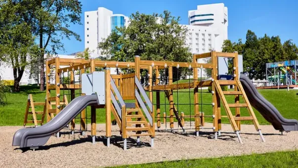 Funksjoner: Armgang, balansebro, klatrenett, klatrestige, sklie