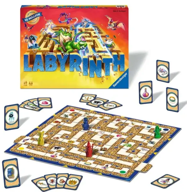 Innhold: 1 spillebrett, 34 labyrintkort, 24 skattekort, 4 spillefigurer av tre, spilleregler