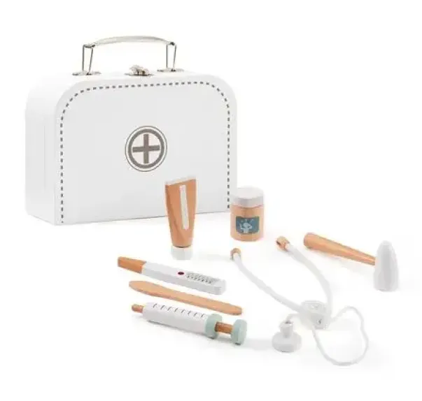 Innehold: 1 x bære veske, 1 x sprøyte, 1 x termometer, 1 x stetoskpo, 1 x tube, 1 x boks, 1 x tungespatel og 1 x reflekshammer.