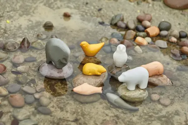 Dyrene kan sorteres og matches med forskjellige kriterier, som f.eks. farge, habitat og egenskaper, som fremmer språk og diskusjon. Hvorfor ikke bygge et hjem for dyrene: et rede for fuglen, en elv for fisken, et isete hav for bjørnen. Barna vil like å skape en personlighet for hvert dyr, noe som gjør settet perfekt for historiefortelling og lek i tema-miljøer – et flott springbrett for å lære mer om livet i naturen, hvilke dyr som finnes i ditt eget miljø og hvordan vi mennesker bedre kan ta vare på dem.