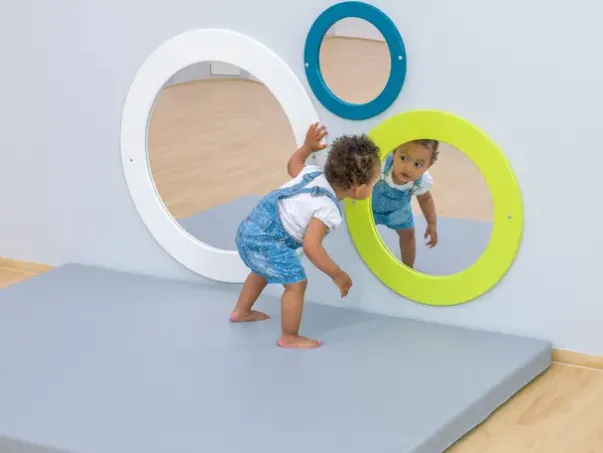 Speil, speil på veggen der? Educasa rundt speil finnes i tre strørrelse der hver størrelse har sin farge, hvit, lime og petrol.