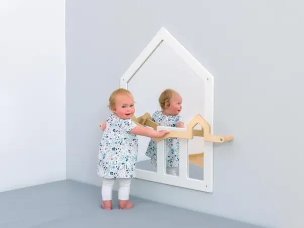Barn er fascinert av speilbilde sitt allerede de første månedene i livet sitt. Educasa speilhus er dekorativt samtidig som det er et fungsjonelt speil. Barren hjelper de små til å reise seg opp og til å ta de første skrittene. Barna kan også flytte de to små husene som henger rundt stolpen. I kombinasjon med Educasa speilhus kan barnet observere seg selv og sine første forsøk på å gå.