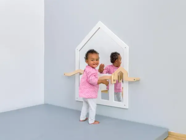 Barn er fascinert av speilbilde sitt allerede de første månedene i livet sitt. Educasa speilhus er et dekorativt speil og er av sikkerhetsglass.