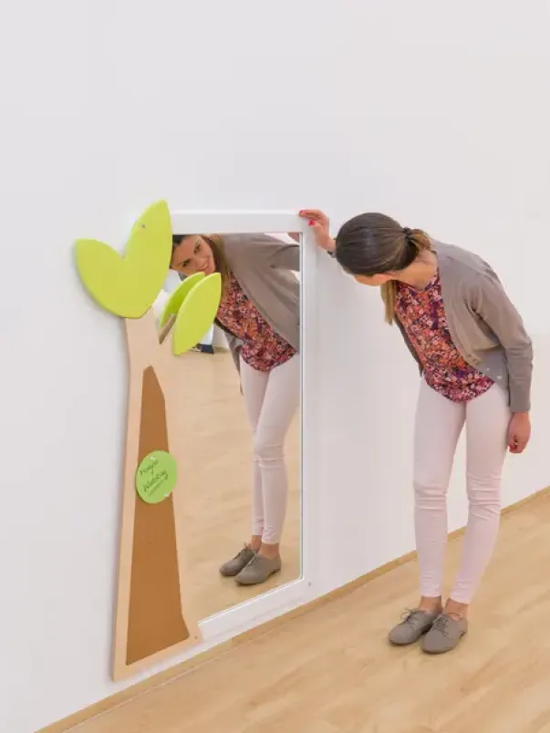 Barn er fascinert av speilbilde sitt allerede de første månedene i livet sitt. Educasa speiltre er både et blikkfang og et praktisk element da stammen er av kork der man kan feste f.eks beskjeder, bilder eller liknende.