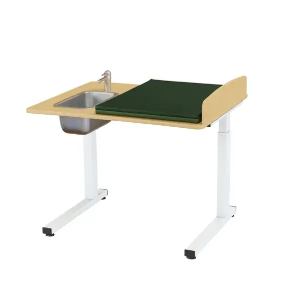 Ella er en serie med elekstrisk heve og senk funksjon hvor man enkelt kan tilpasse arbeidshøyden etter behov. Justeringen fungerer enkelt med en håndkontroll med spiralkabel. Med styreenheten senkes lett stellebordet slik at barn kan klatre opp på stellebordet uten å løftes. Når det er gjort kan du raskt og enkelt stille inn den arbeidshøyden du ønsker. Med avrundede hjørner på sidevanger og bordplaten. Stellebordet leveres komplett inkludert stellepute, vask i rustrfritt stål, ett-greps blandebatteri og avløpsdetaljer