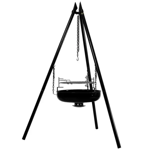 Størrelse: Høyde på 180 cm, og diameter på 150-180 cm avhengig av benvinkel. Diameter på pannen er 60 cm.