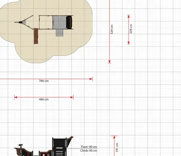 Sikkerhetsareal: L766 x B529 cm, 41 m²