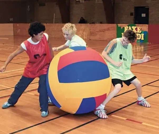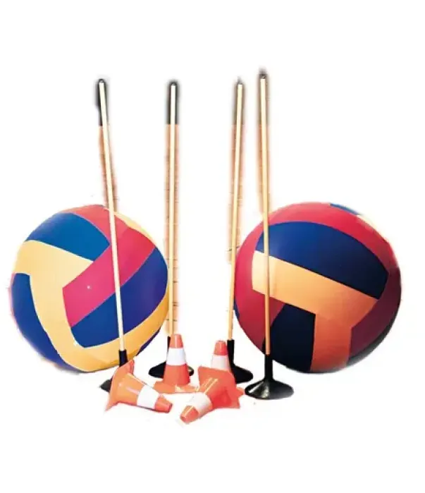 Komplett sett bestående av 2 stk. kjempeballer Ø: 100 cm, trukket med mykt stoff. 2 stk. multitrenere komplett med 6 stk. multistenger. L: 160 cm, 4 stk. multi listeholdere og 4 stk. gummiføtter, vekt ca 3,4 kg. 4 stk. markeringskjegler. H: 30 cm i mykt kunststoff.