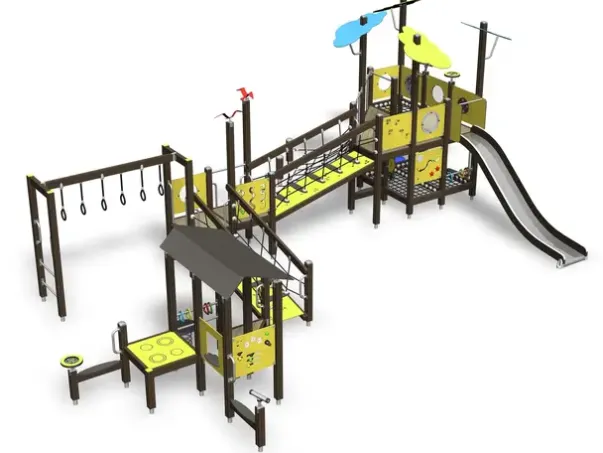 beiset med UV-bestandig beis. Metalldelene er meget slitesterke og har en utsøkt finish. De er behandlet med Lappcoat. Tauet er stålforsterket. Stolpene er ikke i kontakt med bakken, men er forankret med stål.