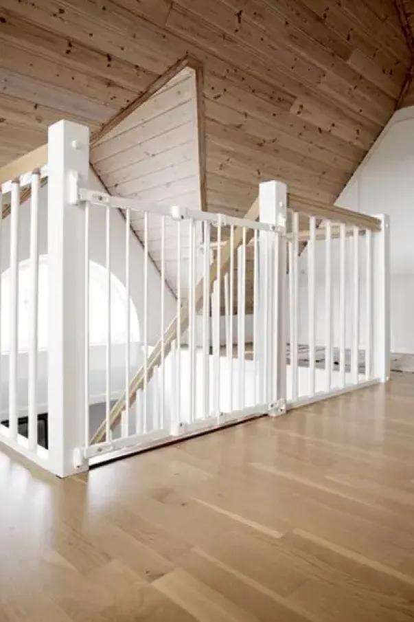 Flexifit i metall farge hvit. Bredde 70,5 -105,5 cm Skruemonterede dørgitter , grind. trapp.