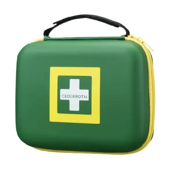 Innhold: 1 Cederroth 4-in-1 Blodstopper, 1 Cederroth 4-in-1 mini Blodstopper, 10 Salvequick Plaster, 6 Salvequick Sårvask, 4 Salvequick Maxi Cover, 1 Pustemaske, 2 Safety Hand Cleanser, 2 par Hansker, 1 Redningsteppe, 1 Elastisk bandasje, 1 Cederroth Burn Gel Dressing, 1 Saks, 1 Førstehjelpsinstruksjon.