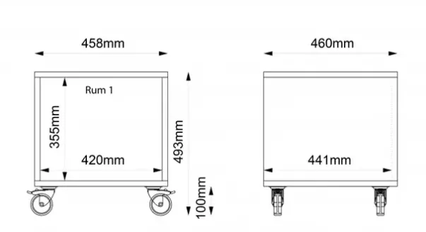 Hvis du ønsker tilbehør som f.eks. skuffer, skillevegger eller hyller – vennligst oppgi romnr. ved bestilling.
