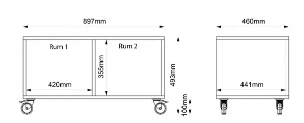 Hvis du ønsker tilbehør som f.eks. skuffer, skillevegger eller hyller – vennligst oppgi romnr. ved bestilling.