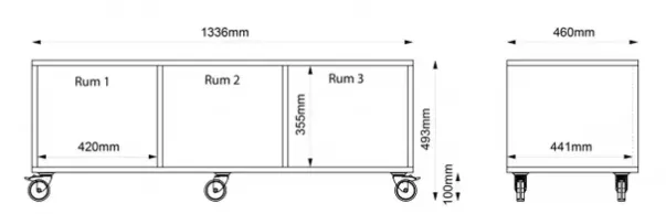 Hvis du ønsker tilbehør som f.eks. skuffer, skillevegger eller hyller – vennligst oppgi romnr. ved bestilling.