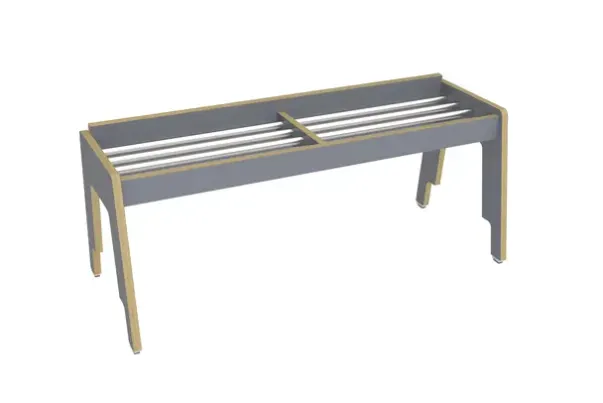 Materiale: 18 mm hvitpigmentert kryssfiner av bjerk, med klarlakk på kanter og med laminat på toppen