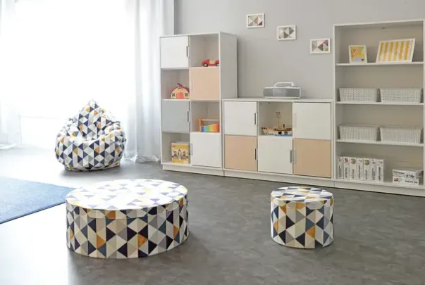 Myke og behagelige sakkosekker fylt med granulat som er formet etter avtrykket til en sittende person. Yttertrekket i velourstoff.