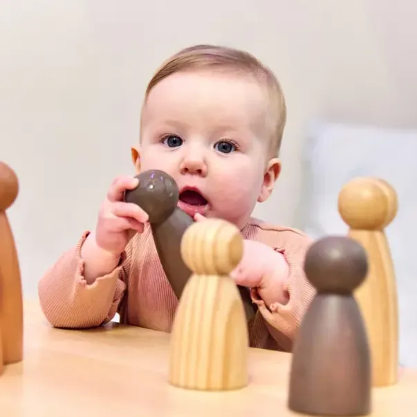 Ferdighet og funksjon: Barn kan bruke disse gigantiske figurene i utforskningen av den lille verdenen sin, og skape historier og fortellinger mens de utvikler sine tidlige leseferdigheter. Fremmer historiefortelling. Trefigurene inspirerer til diskusjoner om likheter og forskjeller, og bidrar til forståelsen av verden.