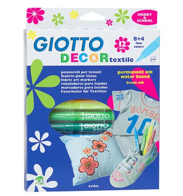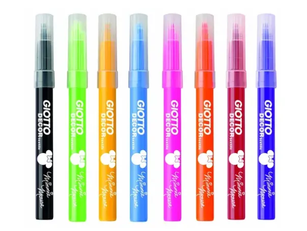 Tusjer med penselspiss, enkle å bruke. Vannfast opp til 40 grader. Bruk strykejern for å fiksere fargene.