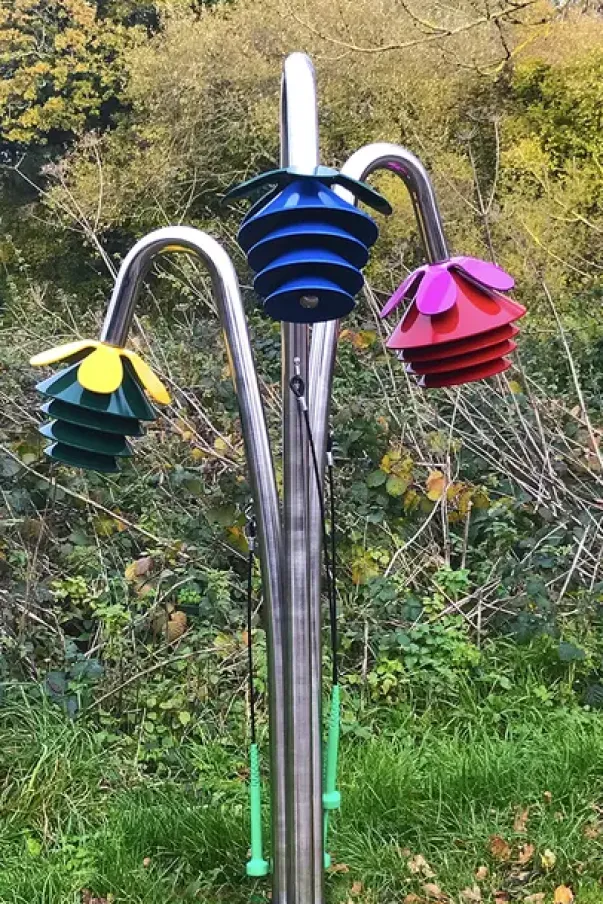 Visuelt stimulerende og fargerik, hver «blomst» er laget av fire klokker med avtagende størrelse og stigende tonehøyde. Hver «bjelle» gir en ren tone med en lang etterklang. C-dur= røde klokker, F-dur= grønne klokker, G-dur= blå klokker.