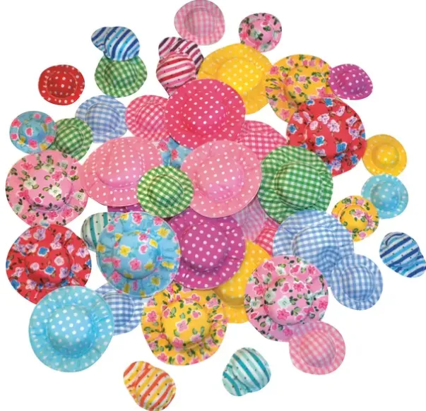 Hatter av formpresset tekstil i assortert farge og mønstre.
