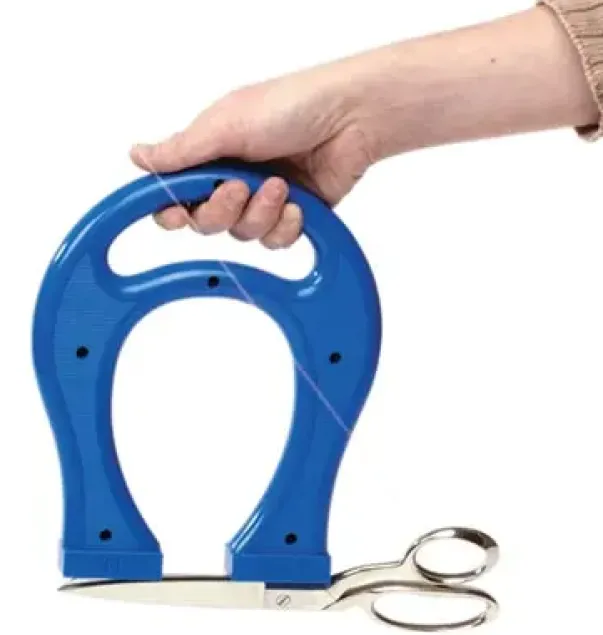 Formet som en hestesko med håntak. Selve bøylen er i plast og bare «føttene» er magnetiske.