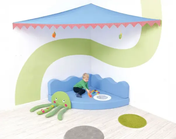 Himmel til hav lekehjørne. Taket monteres fast til vegg. Monteringselementer følger ikke med. Anbefalt høyde fra madrass til montering av tak er 170 cm.