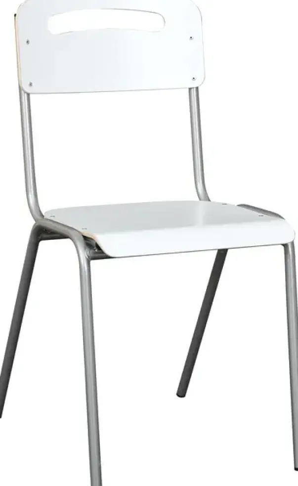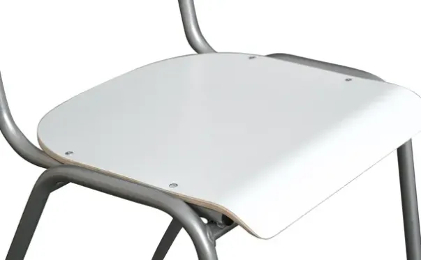 Klassisk og stødig stol som passer godt i klasse- og personalrom. Stolen har slitesterk HPL på sete og rygg. Høyttrykkslaminat er enkelt å vedlikeholde og kan tørkes av med en fuktig klut. Det er også motstandsdyktig mot riper.