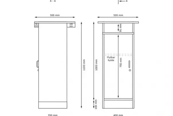 Mål: B40 x D35 x H110 cm inkl. sokkel. Platestørrelse: 50 x 50 cm.