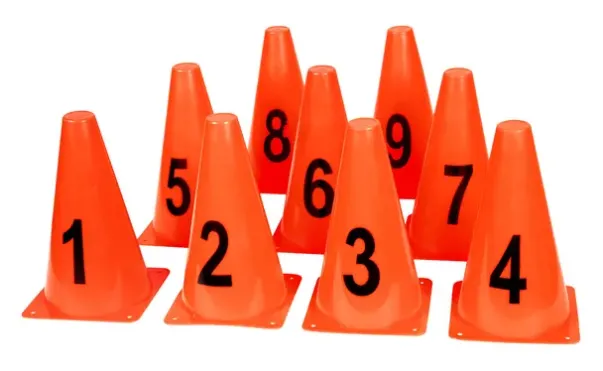 Farge: Oransje kjegler med svarte tall