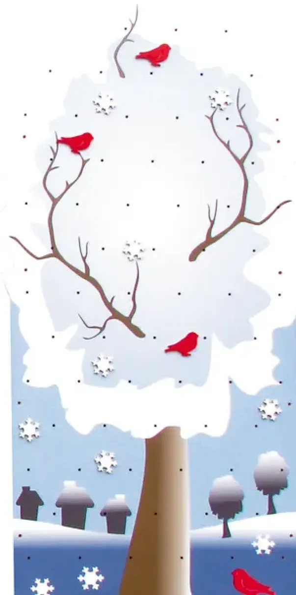 - Dekorasjonstilbehør: 7 stk. snøfnugg og 3 stk. fugler