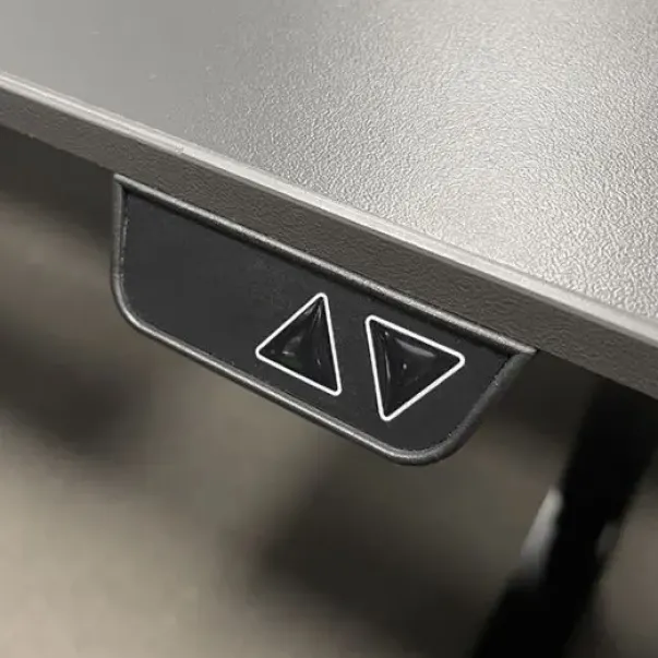 Heve-senk kontorpult i 25 mm tykk laminert spon. Leveres med pulverlakkert el-motorisert understell.
