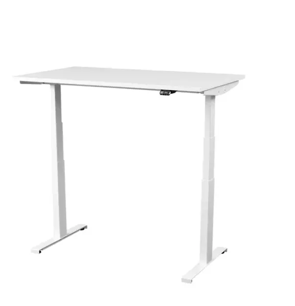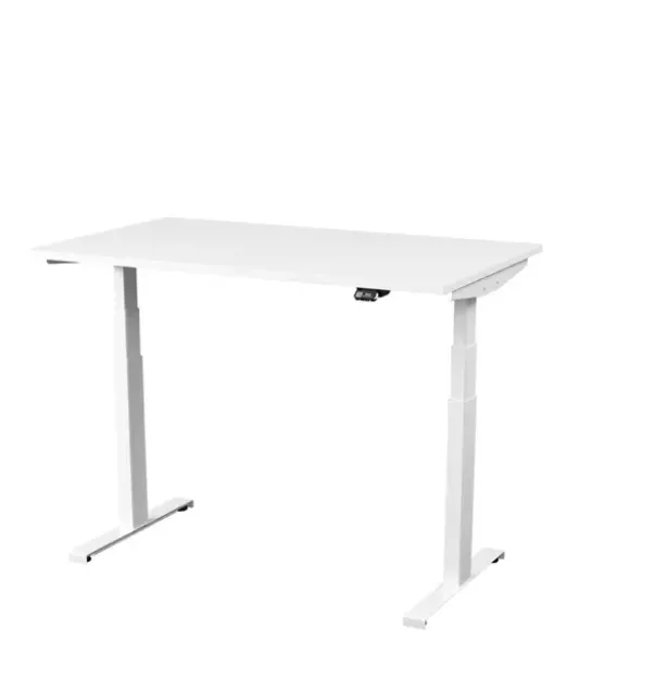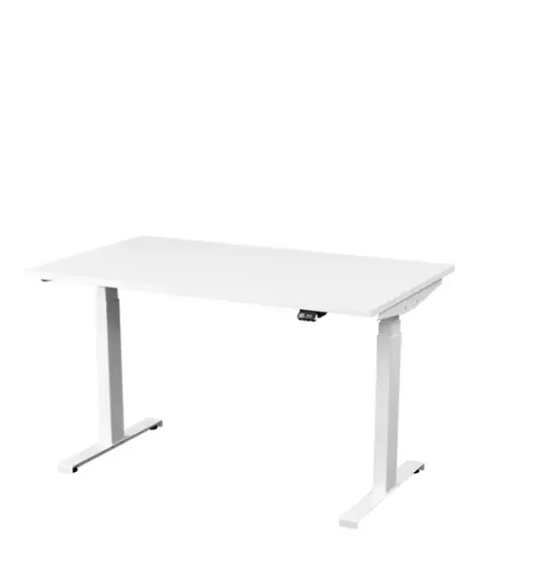 Heve-senk kontorpult i 25 mm tykk laminert spon. Leveres med pulverlakkert el-motorisert understell.