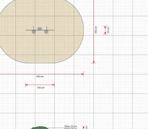 Sikkerhetsareal: L450 x B343 cm, 15 m²