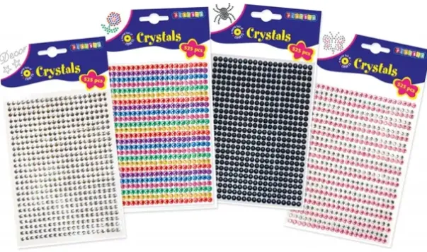 4 ark med selvklebende, runde krystallsteiner. Hvert ark inneholder ulikt fargetema.