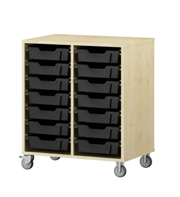 Materiale: 18 mm tykk møbelspon med direktelaminat med 12 mm bakvegg, plastskuffer