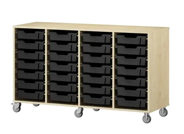 Materiale: 18 mm tykk møbelspon med direktelaminat med 12 mm bakvegg, plastskuffer