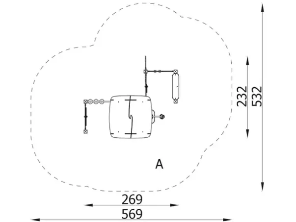 Sikkerhetsareal: 532 x 569cm