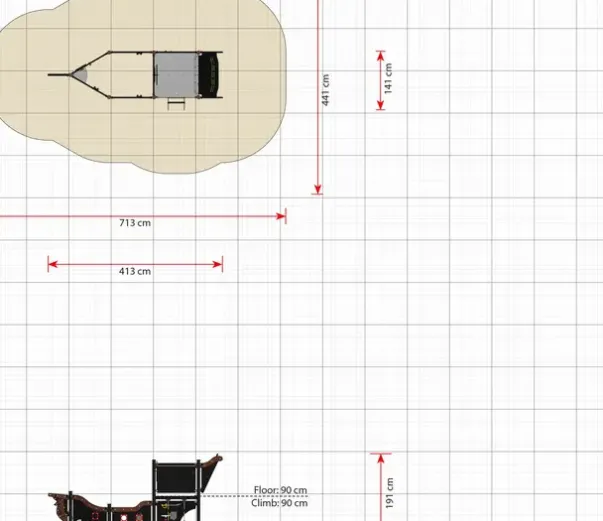 Sikkerhetsareal: L713 x B441 cm, 31 m²