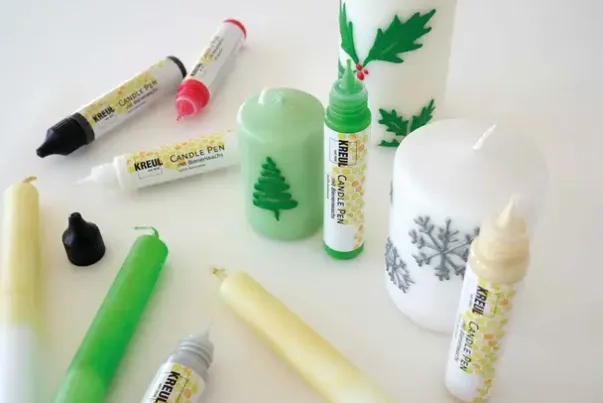Etter en tørketid på ca. 8 timer er maleriet stivnet på stearinlyset