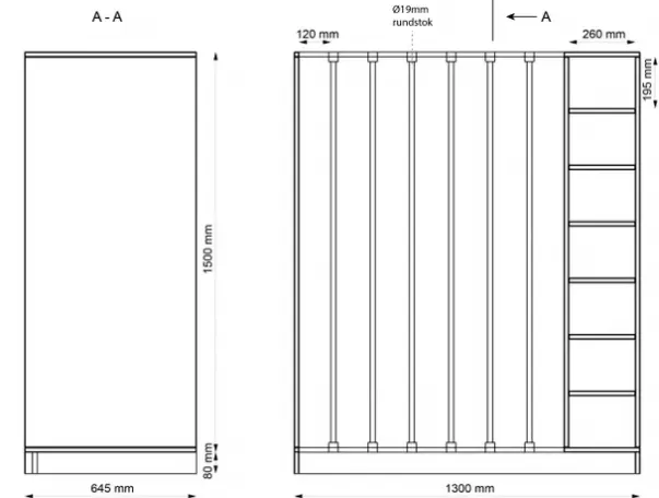 Rom til sengetøy: B26 x D64,5 x H19,5 cm.