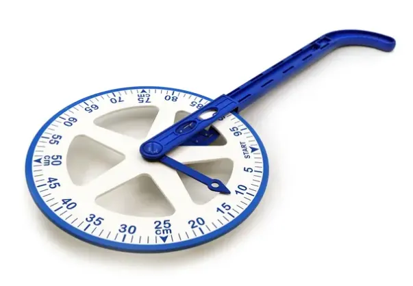 Til oppmåling av større avstander. «Klikker» for hver meter, pluss et telleverk som teller hver meter.