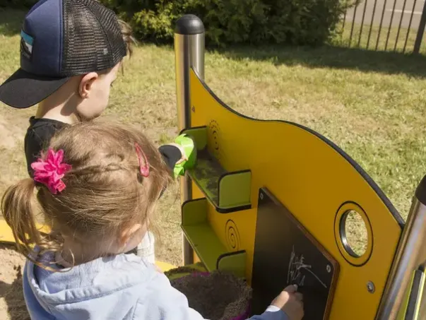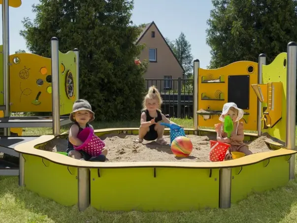 Funksjoner: Lekehus, lekepaneler, sandkasse og sklier