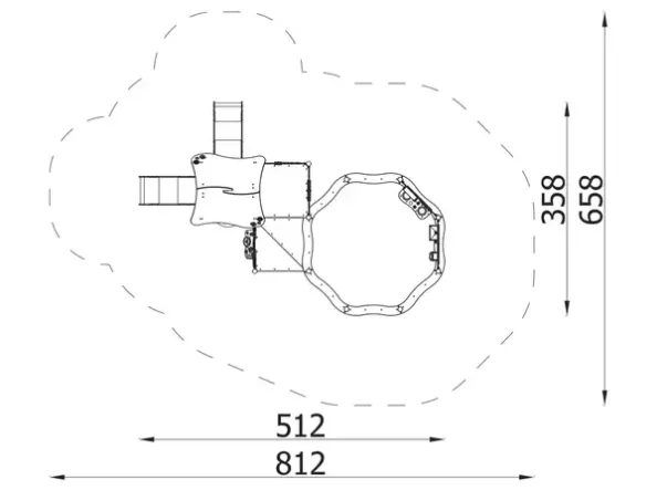 Sikkerhetsareal: L812 x B658 cm, 37 m²