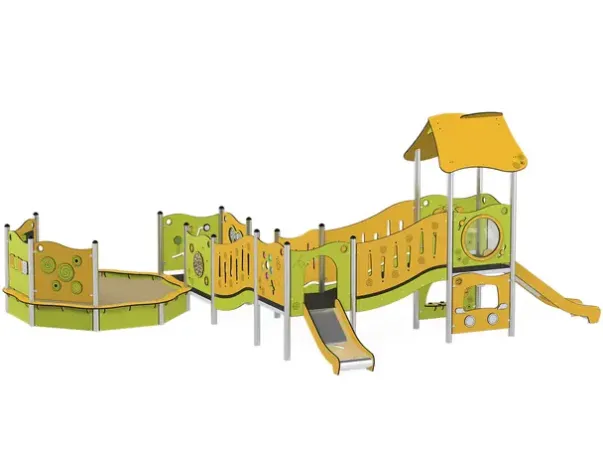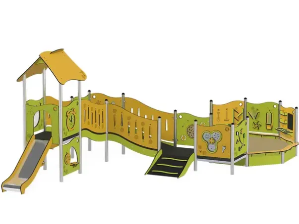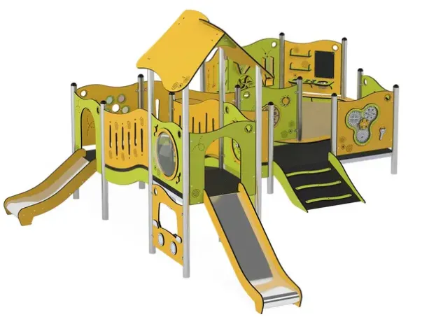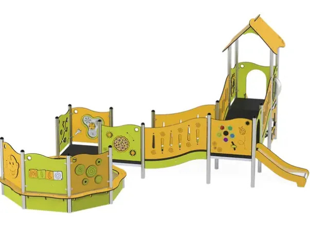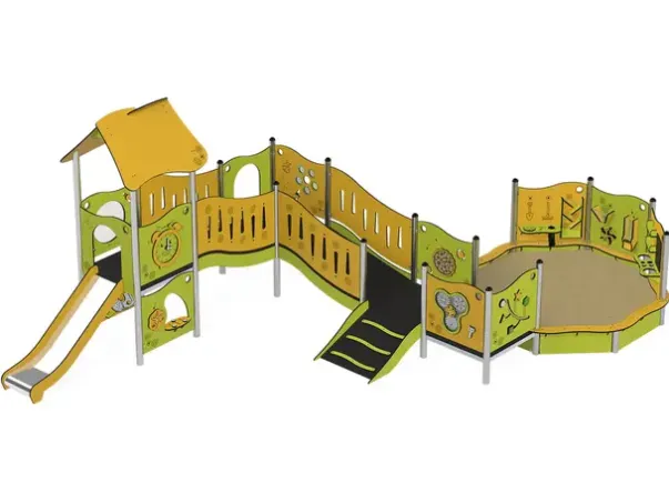 Funksjoner: Lekehus, lekepaneler, rampe, sandkasse, sklie, lekekjøkken